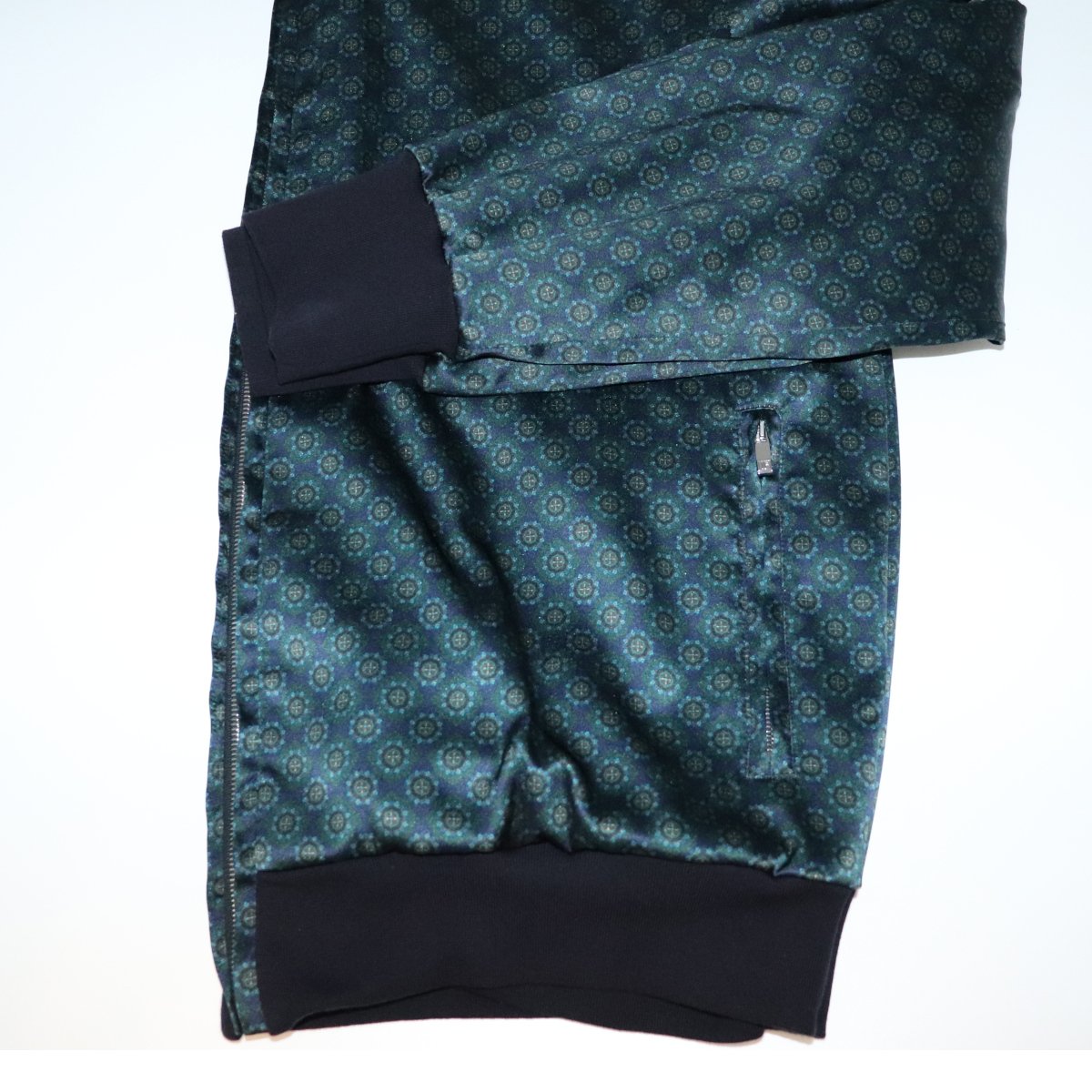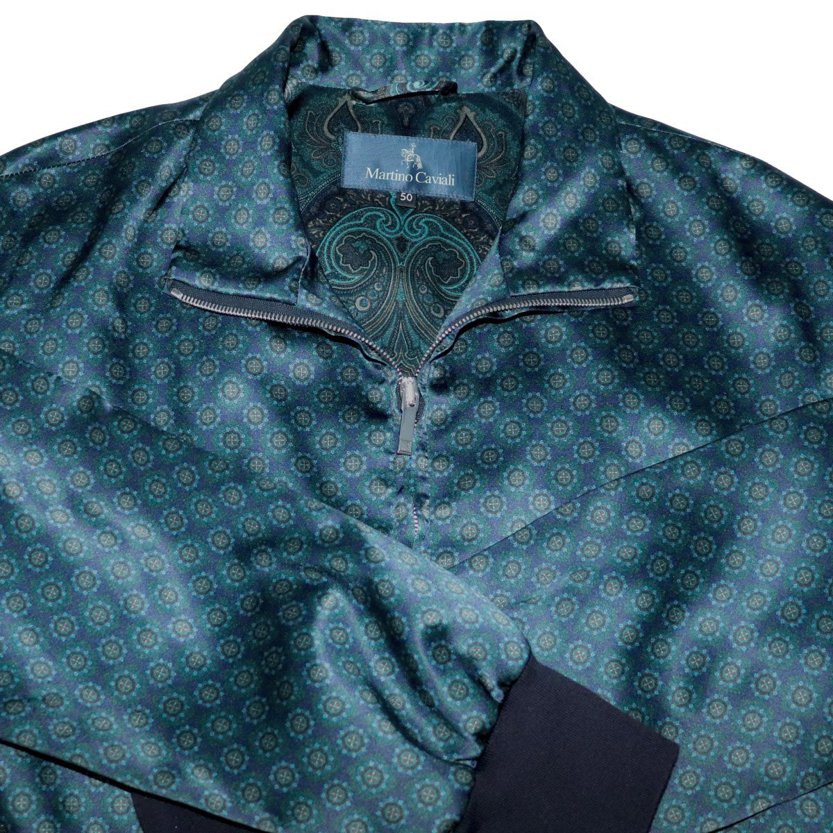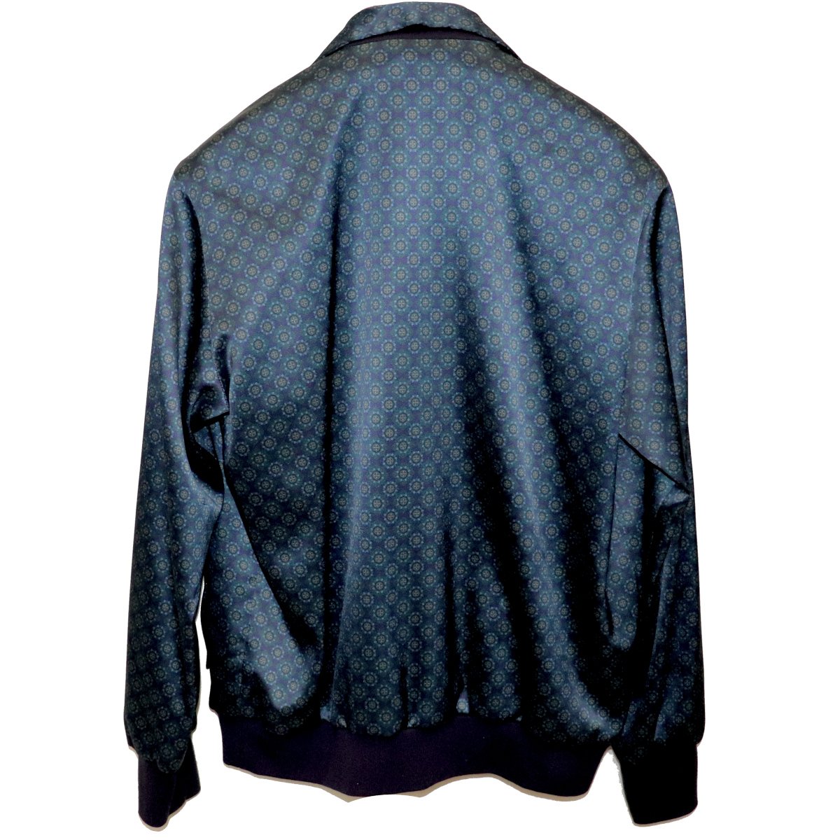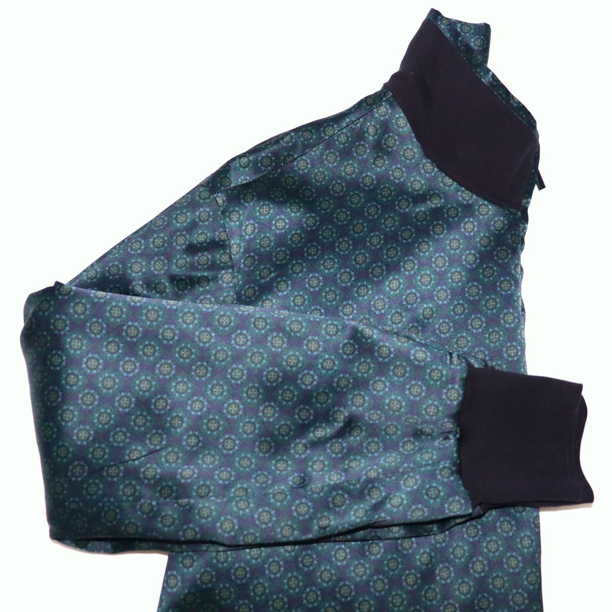 Bomber su misura in seta, fantasia geometrica, fodera paisley in tono, fatto a mano in Italia