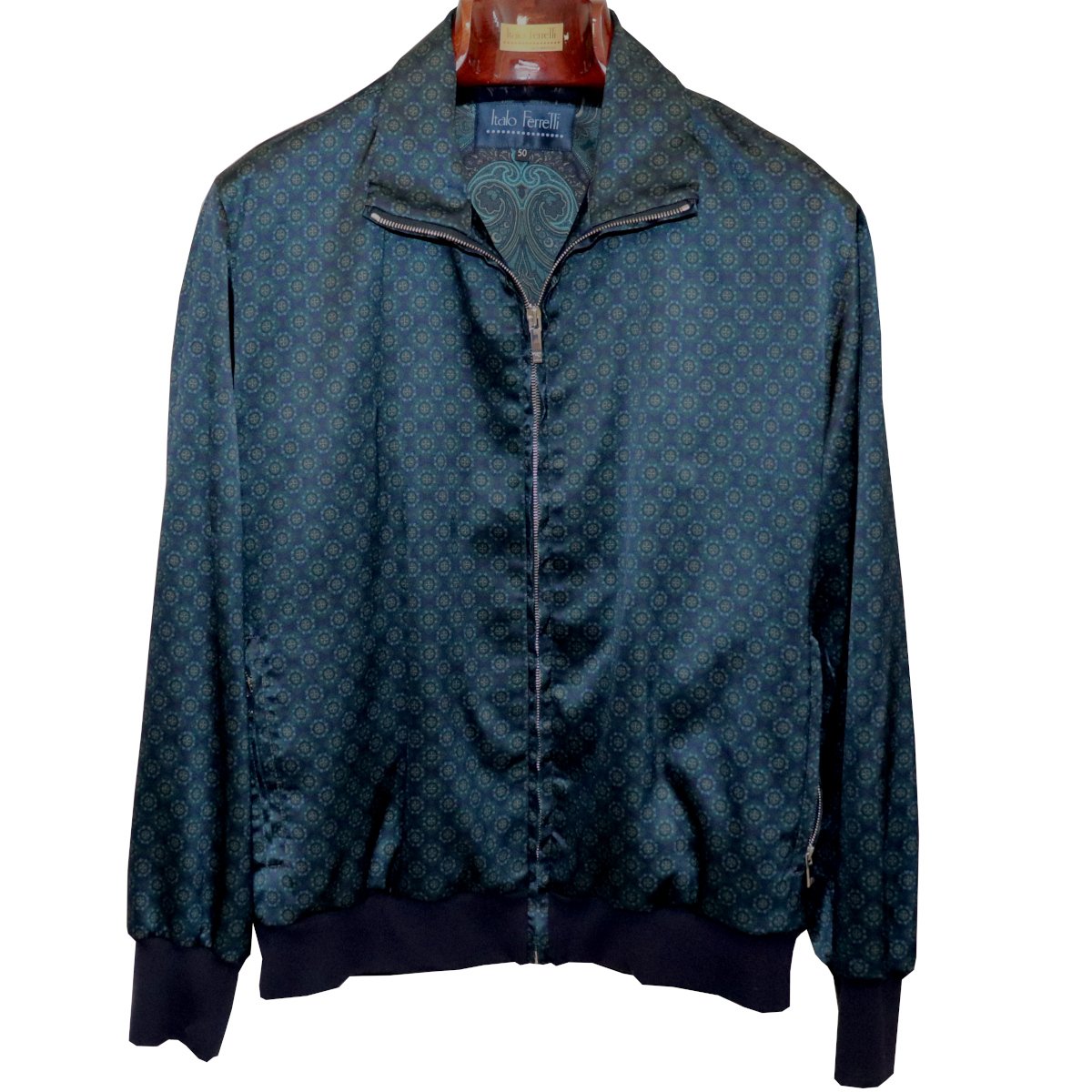 Bomber in seta, zip logo, collo classico, polsini e fondoo elasticizzati, due tasche laterali. Fatto a mano in Italia.